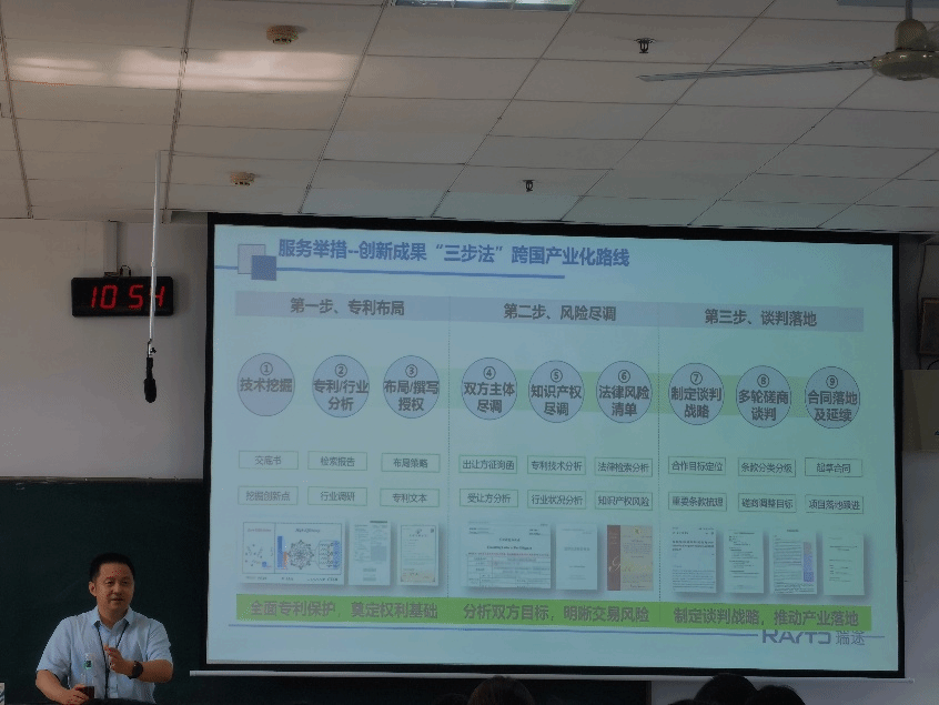 授课中,蒋海军结合行业具体案例,分别从知识产权的创造服务、保护服务、咨询服务、谋划布局、转移转化等方面展开讲解。通过镇江香醋包装装潢、国内首个GPL协议抗辩案等多个具体案例的分析,强调了知识产权对产业国际核心竞争力提升的重要地位和作用。